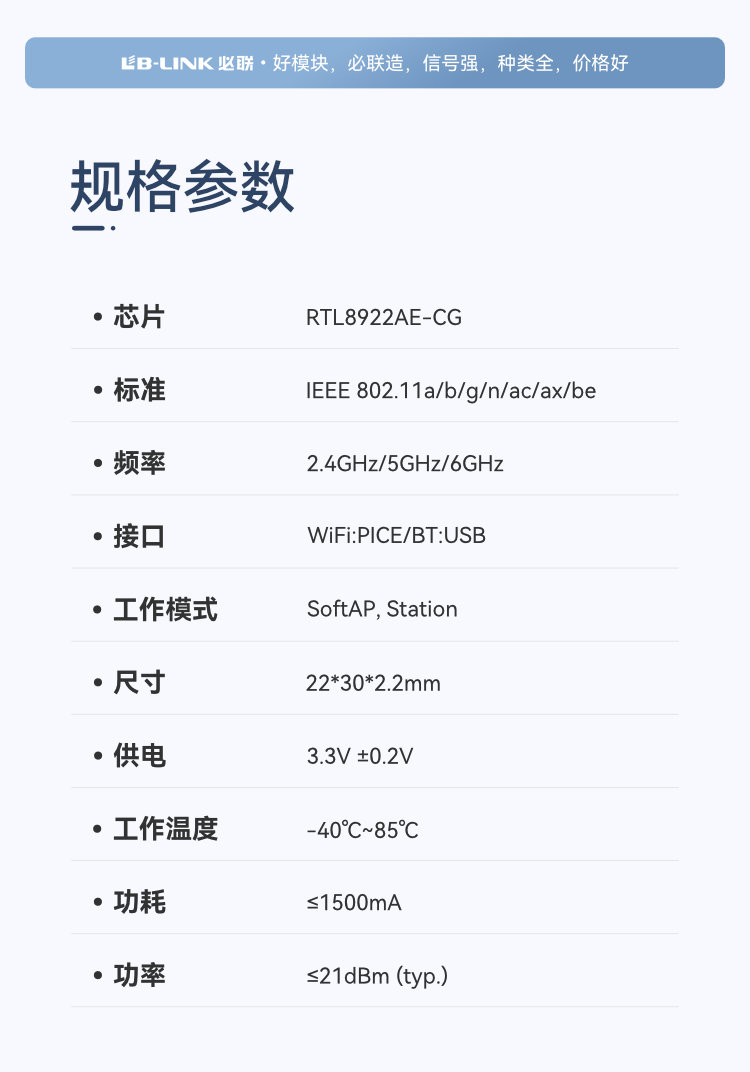 2T2R 802.11a/b/g/n/ac/ax/be WiFi+BT5.4模组